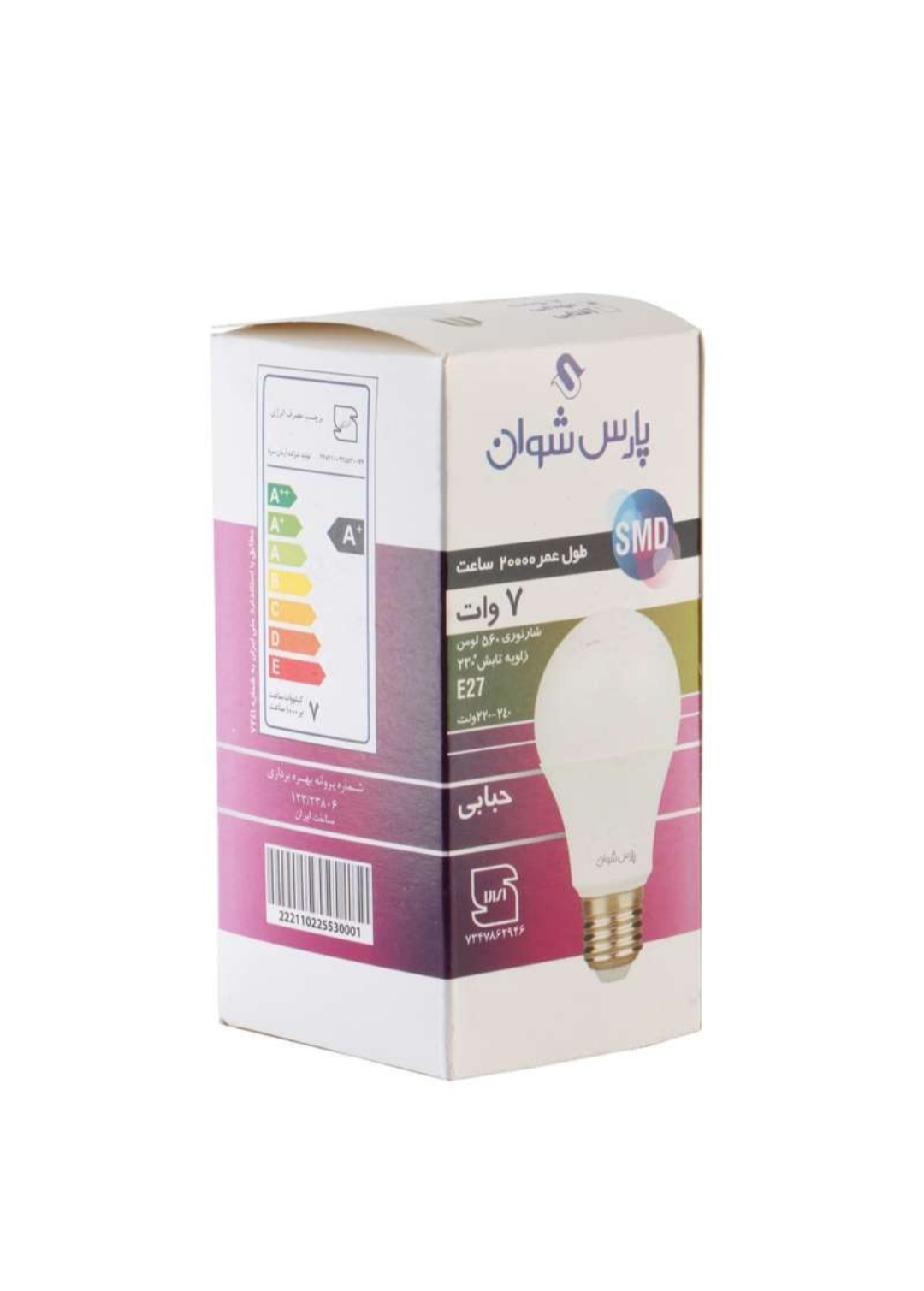 لامپ ال ای دی حبابی 7 وات پارس شوان نور مهتابی