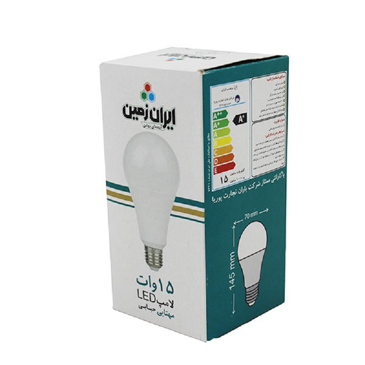لامپ ال ای دی حبابی ۱۵ وات نور آفتابی ایران زمین
