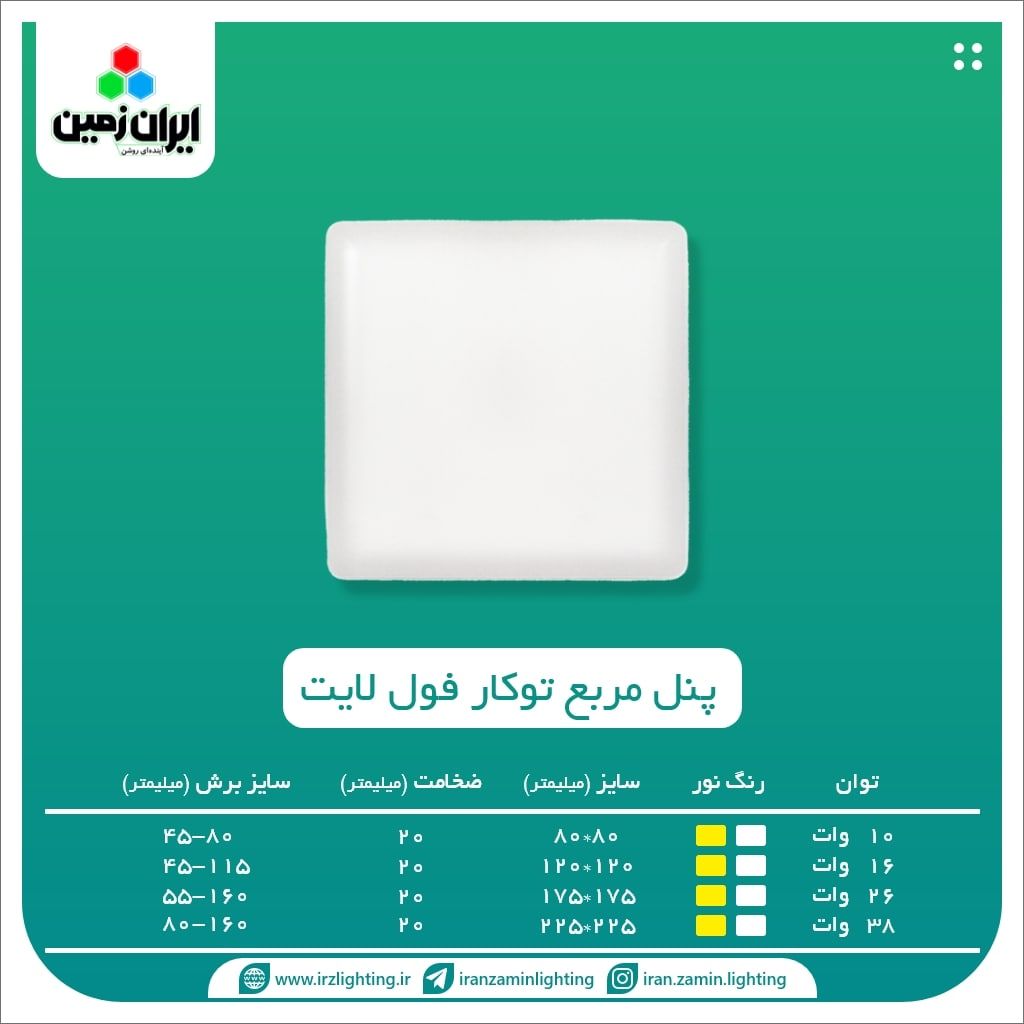 پنل فول لایت مربع فنر متغیر ۱۸ وات نور آفتابی ایران زمین