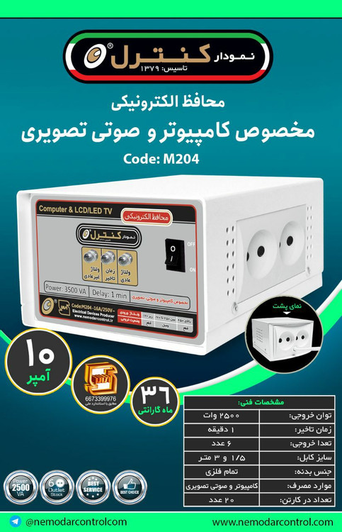 محافظ 6خانه(تمام جنس بدنه فلزی) مخصوص کامپیوتر و صوتی تصویری 10آمپر با کابل 3 متری مدل m204 نمودار کنترل
