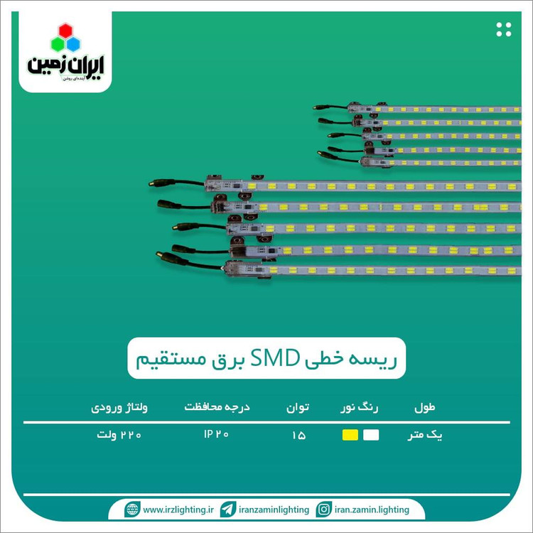 ریسه خطی smd یک متری نور مهتابی برق مستقیم 220 ولت ایران زمین