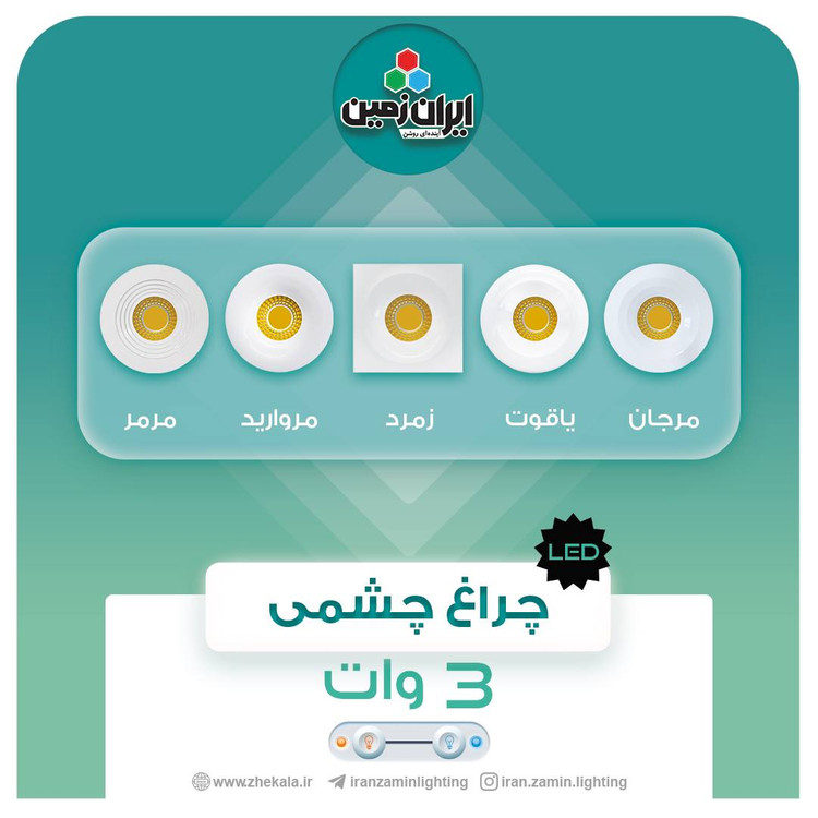 چراغ چشمی مربع 3 وات مدل زمرد نور مهتابی ایران زمین