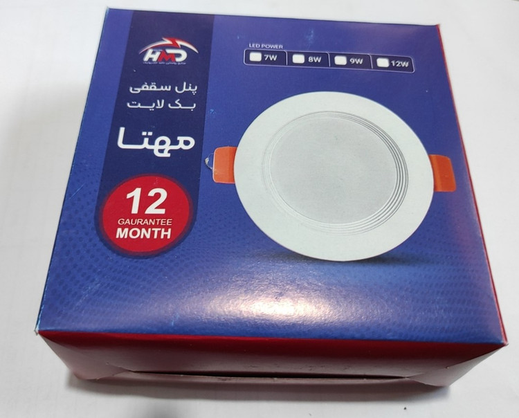 پنل سقفی توکار بک لایت نور آفتابی 7 وات مدل مهتا صنایع روشنایی حامد الکترونیک