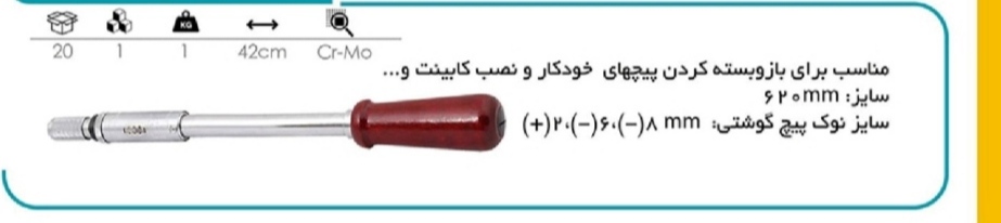 1 عدد نوک پیچ گوشتی فشاری چهارسو: 2 میلی متر