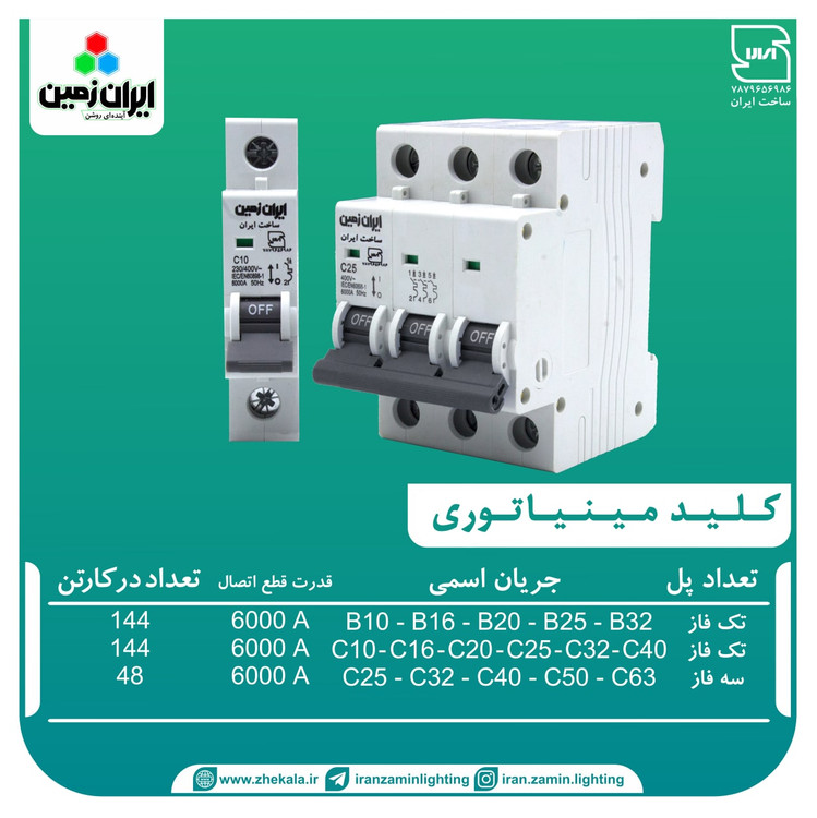 فیوز مینیاتوری تکفاز فاز 6کیلو 16آمپر ایران زمین
