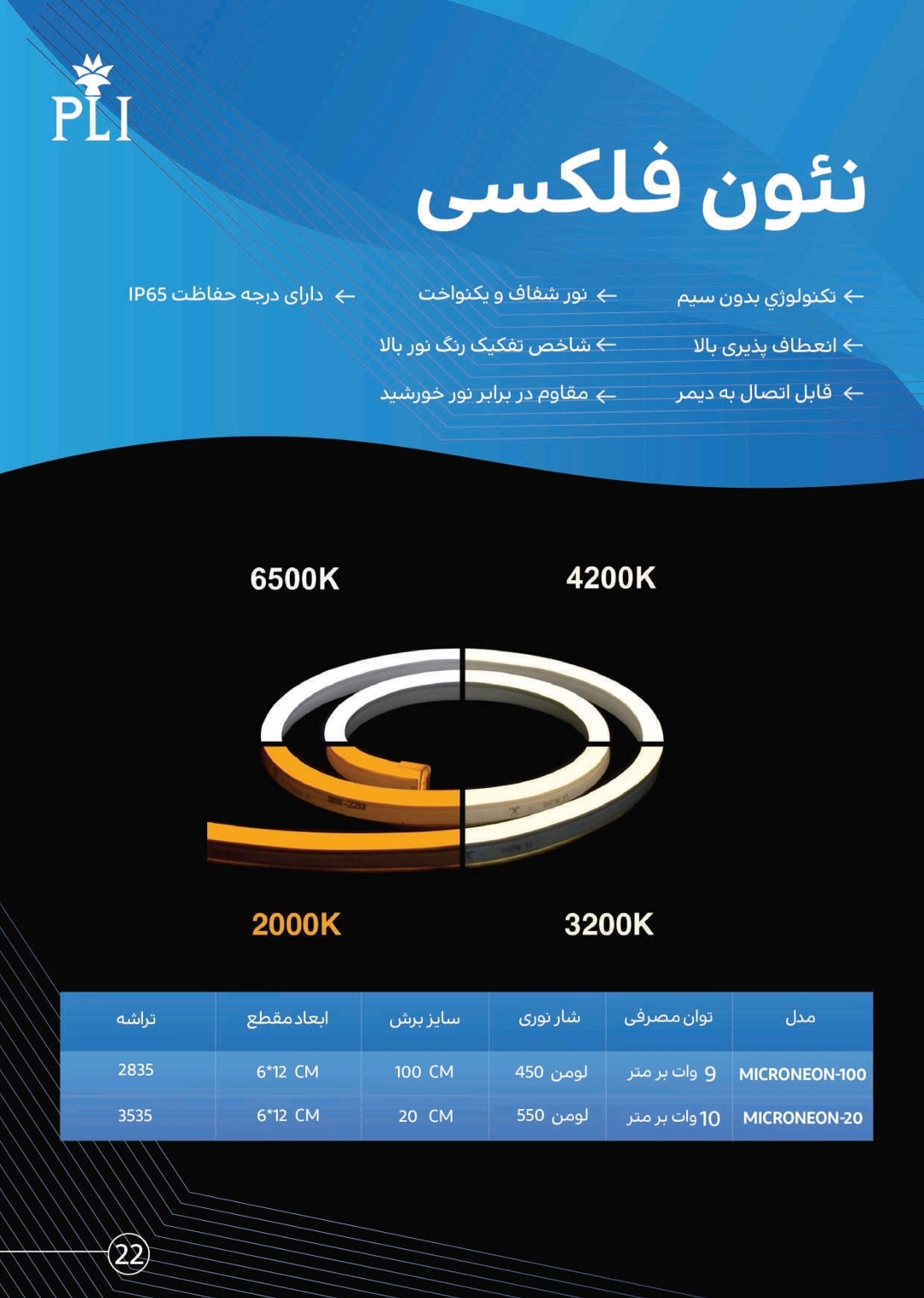 ریسه نئون فلکسی 2835 پرشین لایت 220 ولت برش یک متر تراکم 120 توان 9 وات بر متر نور مهتابی