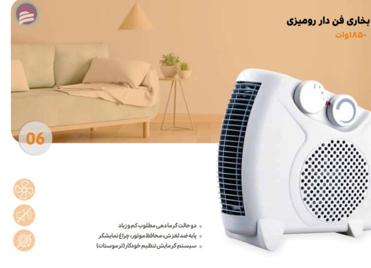 بخاری رومیزی فن دار ایران زمین مدل 06، با توجه به قابلیتهای بالا و ایمنی مناسب، انتخابی هوشمندانه برای افرادی است که به دنبال گرمایش سریع و مؤثر هستند.