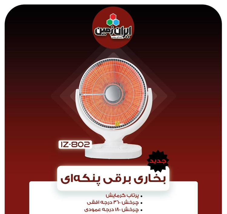 بخاری برقی پنکه ای 900 وات مدل 802 ایران زمین