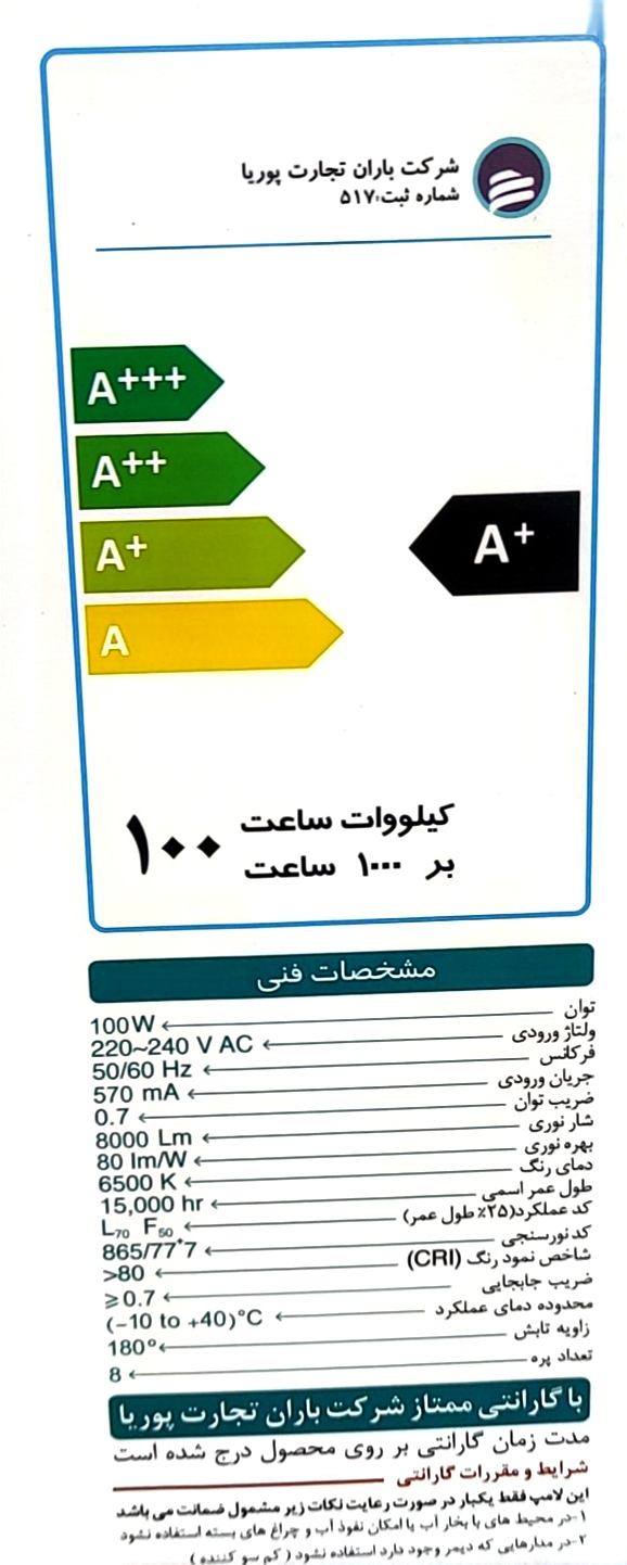لامپ ال ای دی لوتوس (پروانه) 100وات 8 پر هلدور(E27 معمولی)ایران زمین نور مهتابی