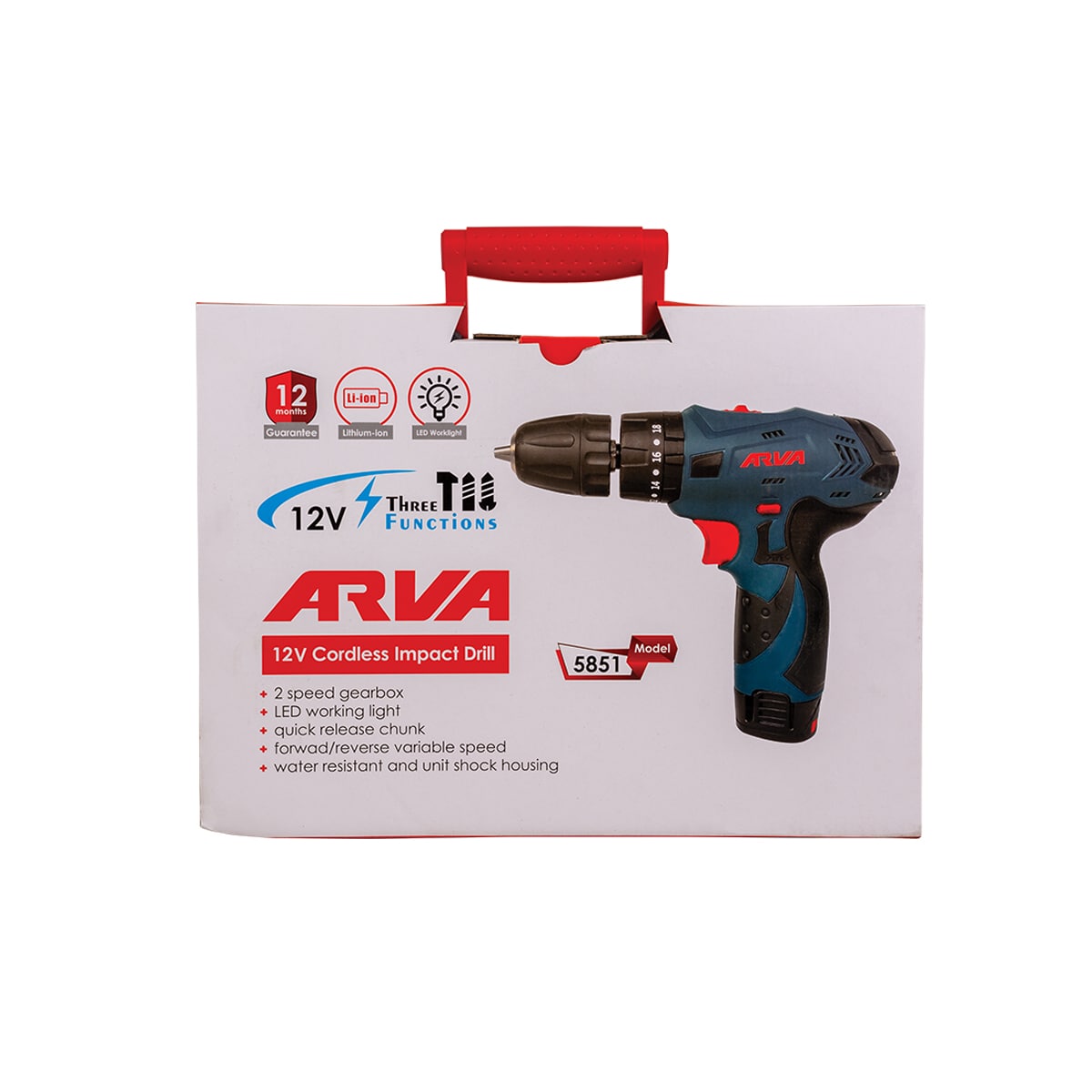 دریل پیچ گوشتی شارژی چکشی ۱۲ ولت مدل ۵۸۵۱ آروا