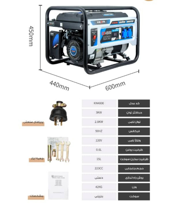 | سایر مشخصات | سوخت:بنزین روش راه اندازی:دستی حجم جابه جایی:223CC ظرفیت مخزن سوخت:15L |