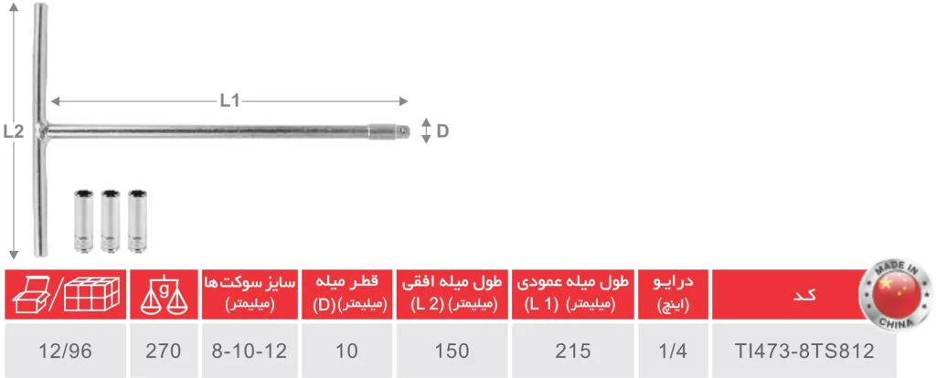 ست آچار بکس دسته T سوکت‌خور 4 عددی درایو 1/4 اینچ توسن T1473