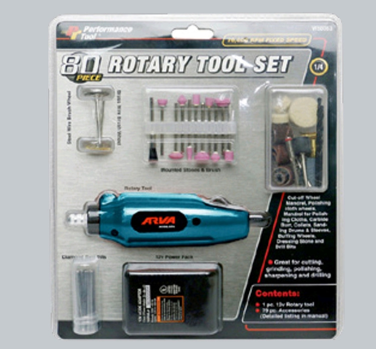 - لوازم جانبی شامل فرز حکاکی برای سنباده، برش، سنگزنی، کندهکاری، پرداخت و تمیز کردن